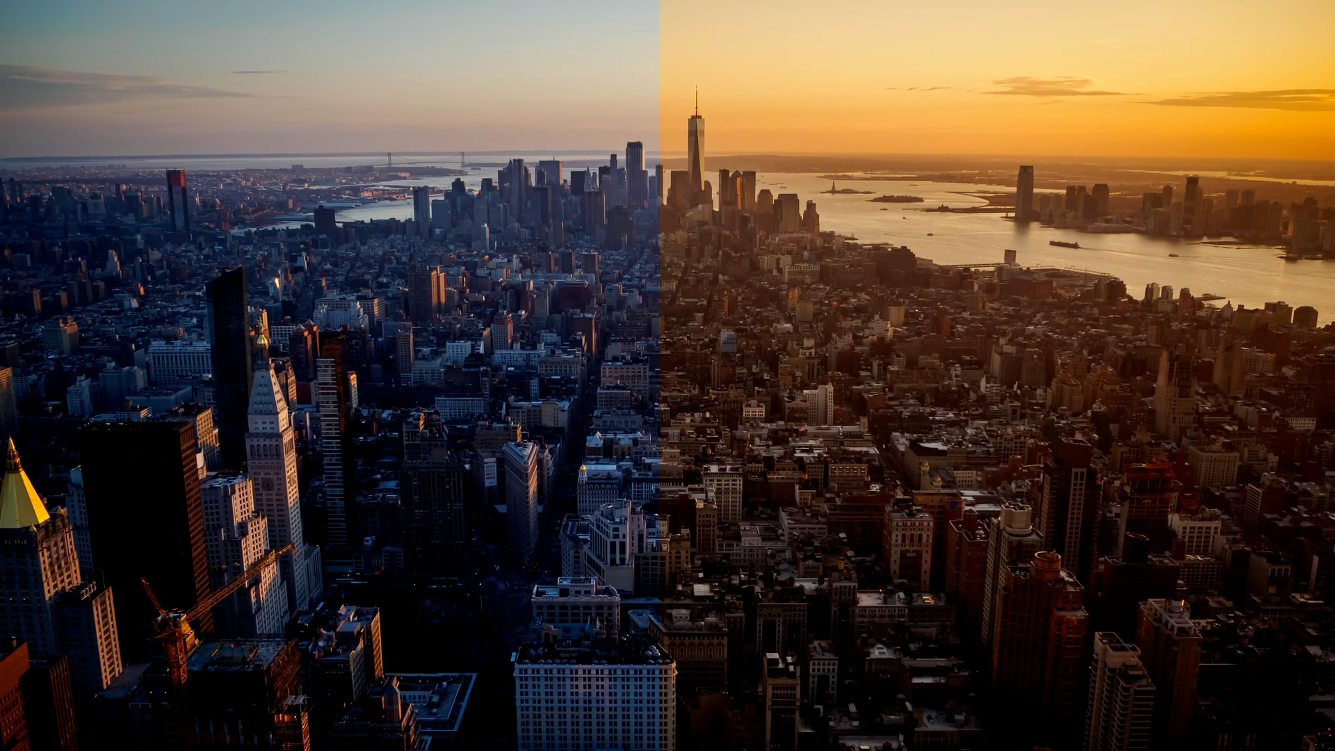 Avant (gauche) / Après (droite) réglage de la balance des blancs pour amplifier un coucher de soleil.