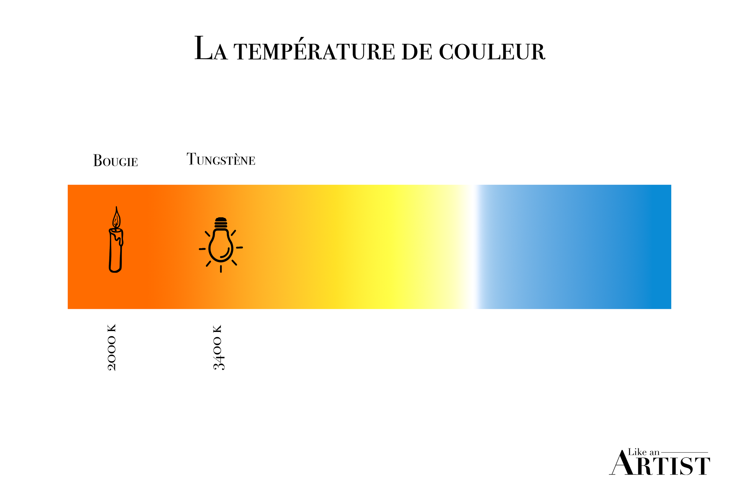 Pour bien gérer la balance des blancs, il faut comprendre la notion de température de couleur. La température de couleur, elle est mesurée en Kelvin (K), ça décrit la teinte de la lumière d’une source lumineuse.